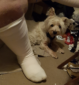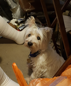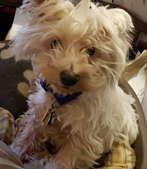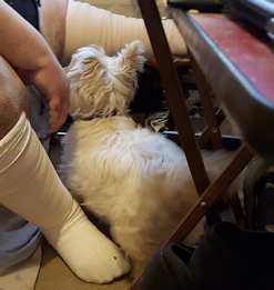 Here's another photo of our senior pup to keep us going until she's home for good again:
