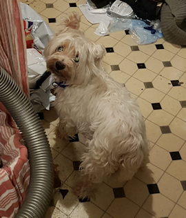 Steve's cousin, Helen, has just (17th December) sent a photo of the puppy dog with her new look. Not as short as the