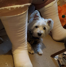 The puppy is home with us all week and going back with Helen next week 'cos that's the start of her normal working week